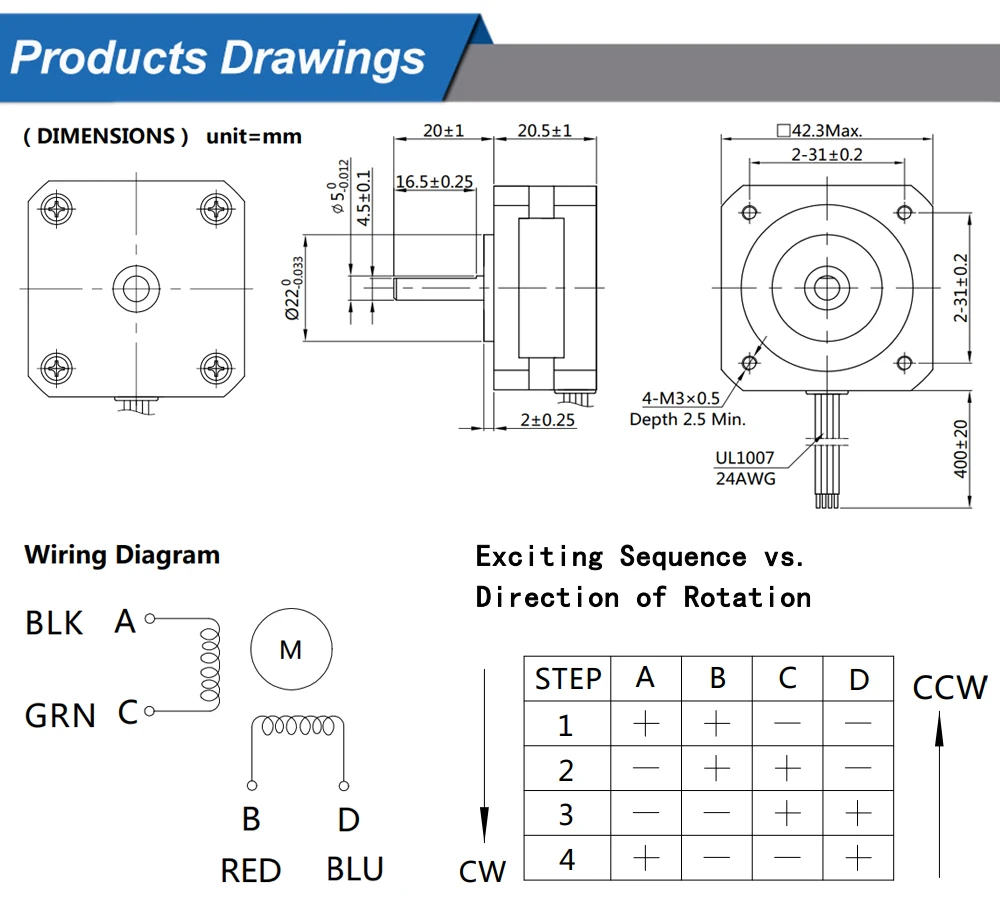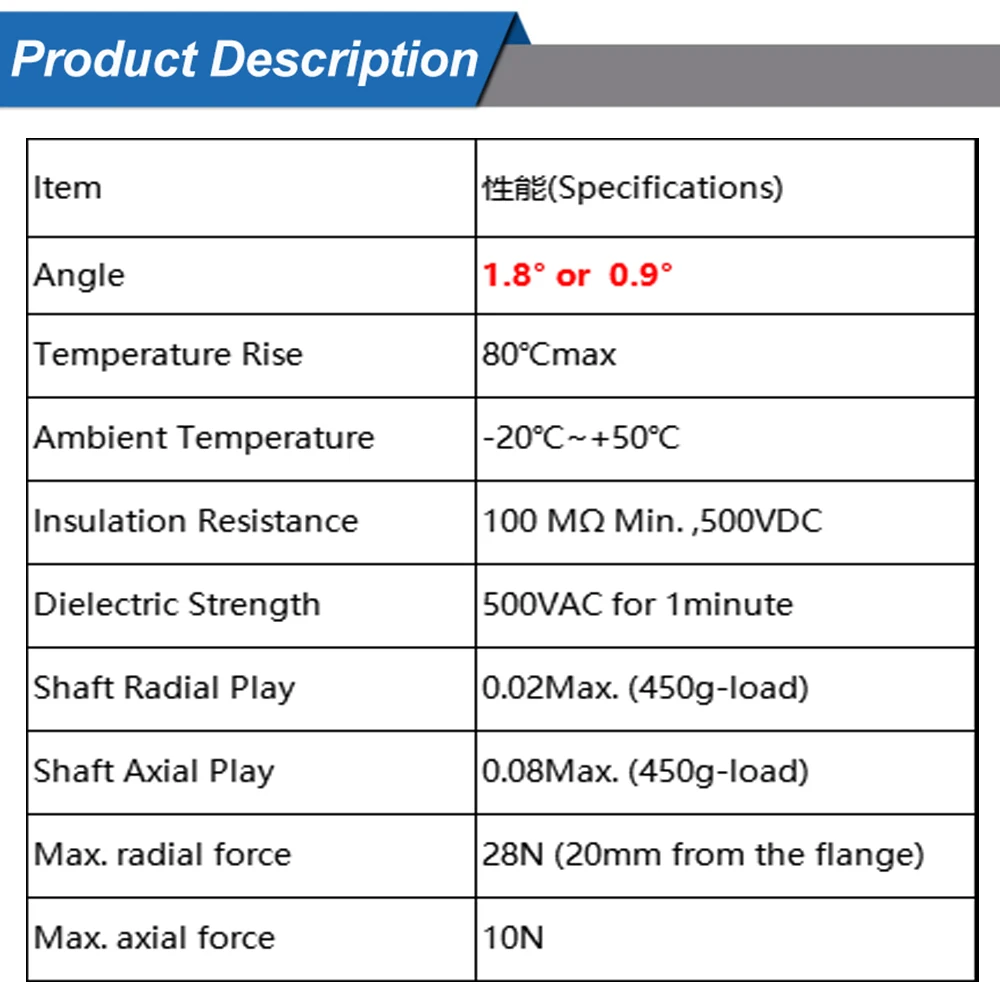 - Angle de l’étape de 1.8 degrés pour une précision élevée