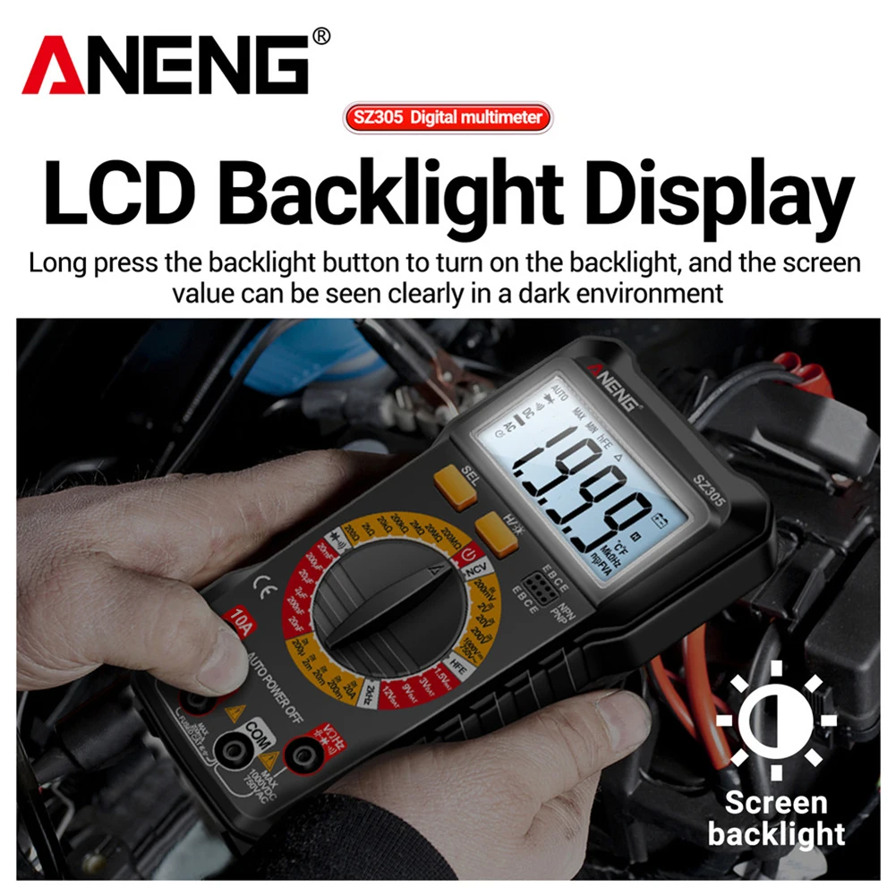 Ce multimètre est doté d’un grand écran d’affichage qui permet une lecture facile des valeurs de mesure. Les lectures claires garantissent une interprétation rapide et précise des résultats, améliorant ainsi la convivialité et la commodité.