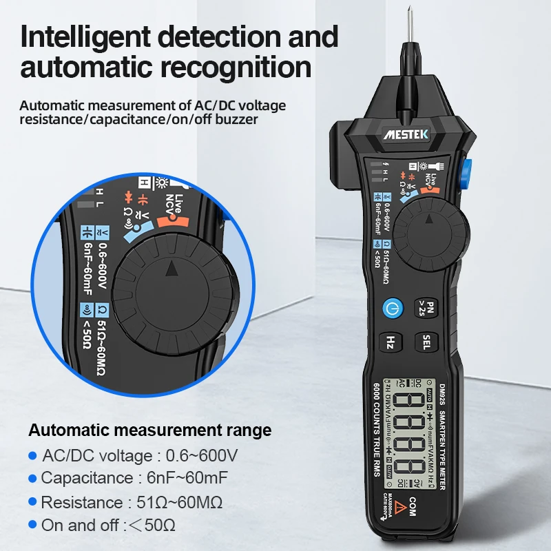 Mesure intelligente, détection de fil de feu, mesure de capacité, écran rabattable à 180 degrés