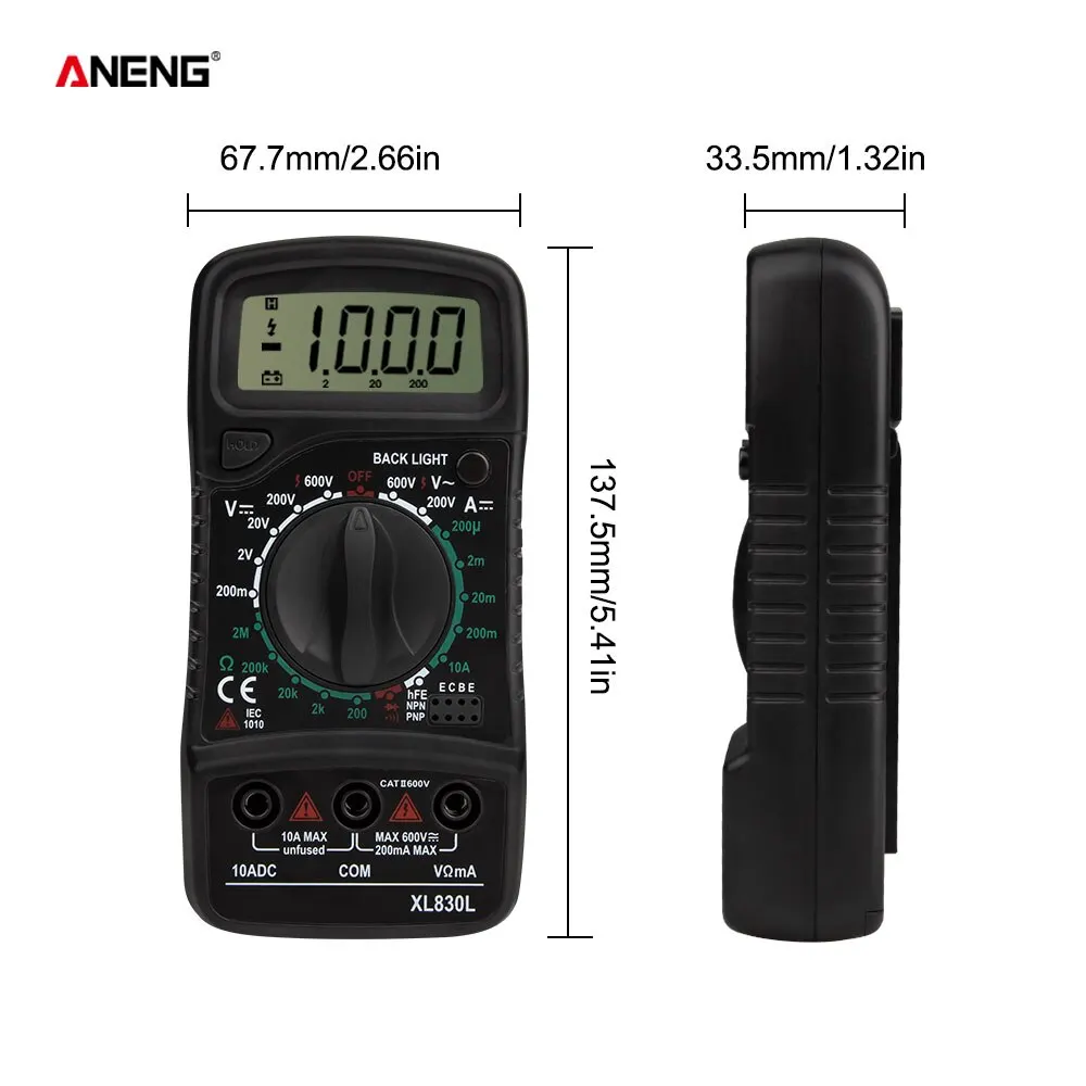 Q: Quelle est la taille du ANENG XL830L-Multimètre Numérique Multifonctionnel?