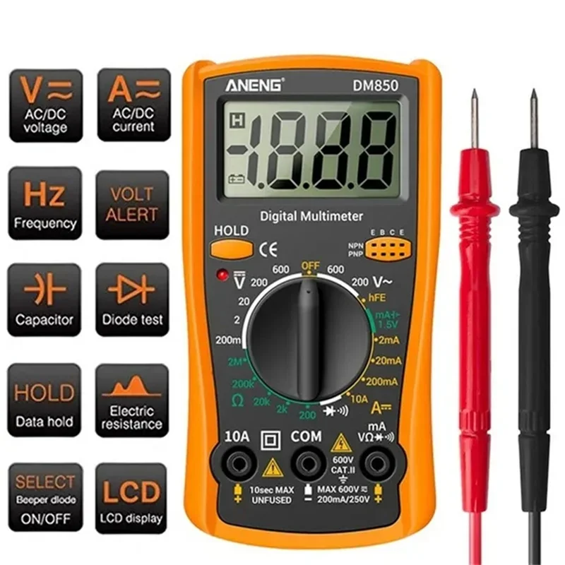 Le Multimètre numérique professionnel portable LCD est un outil de détection de courant ohm, testeur de tension AC/DC.