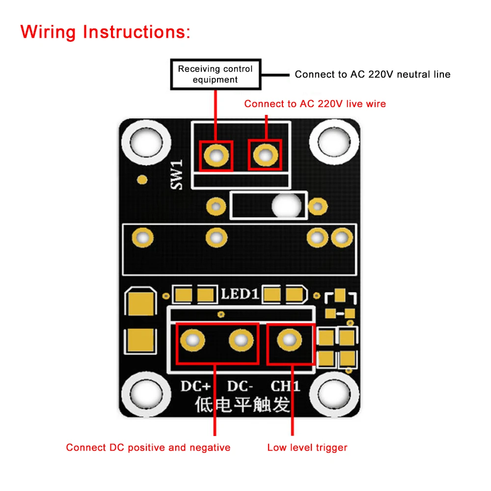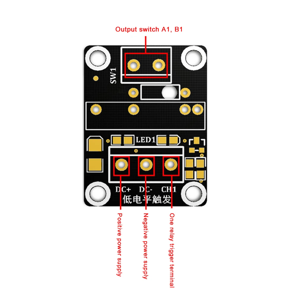 - CH: Borne de déclenchement du signal du module relais (le déclencheur de bas niveau est valide)