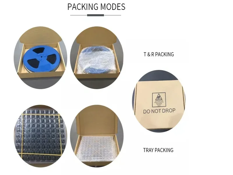 Emballage d’origine scellé, type standard: tube, plateau, ruban et bobine, boîte, emballage de sac. Si vous avez des exigences particulières, veuillez nous en informer. Tous les articles sont emballés dans des sacs de boursouflure, et la mousse peut être adaptée aux besoins du client pour le transport pour fournir la protection forte.