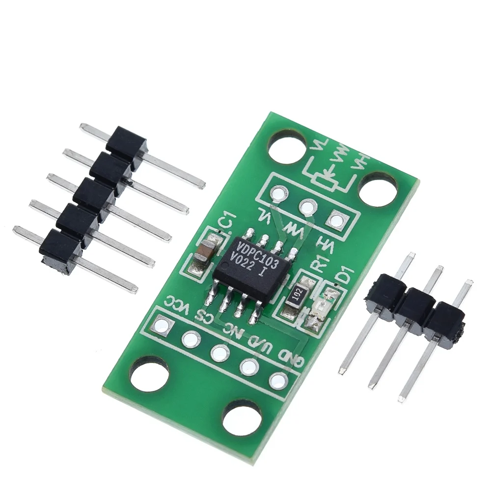 Le potentiomètre numérique X9C103S dispose des ports VL et VH, qui fonctionnent comme un rhéostat coulissant. Cela permet de régler la plage de tension d’entrée de -5V à +5V, offrant une grande flexibilité dans l’utilisation du produit.