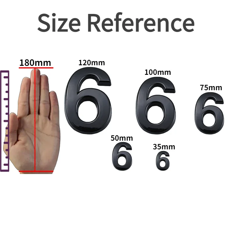 Les numéros de maison extérieurs sont fabriqués en résine ABS écologique, ce qui les rend légers, anti-corrosion et antirouille. Ils sont disponibles en différentes tailles (de 3cm à 12cm) pour s’adapter à tous les besoins. Vous pouvez choisir parmi plusieurs couleurs, notamment Argent, Noir, Rouge Bronze et Doré.