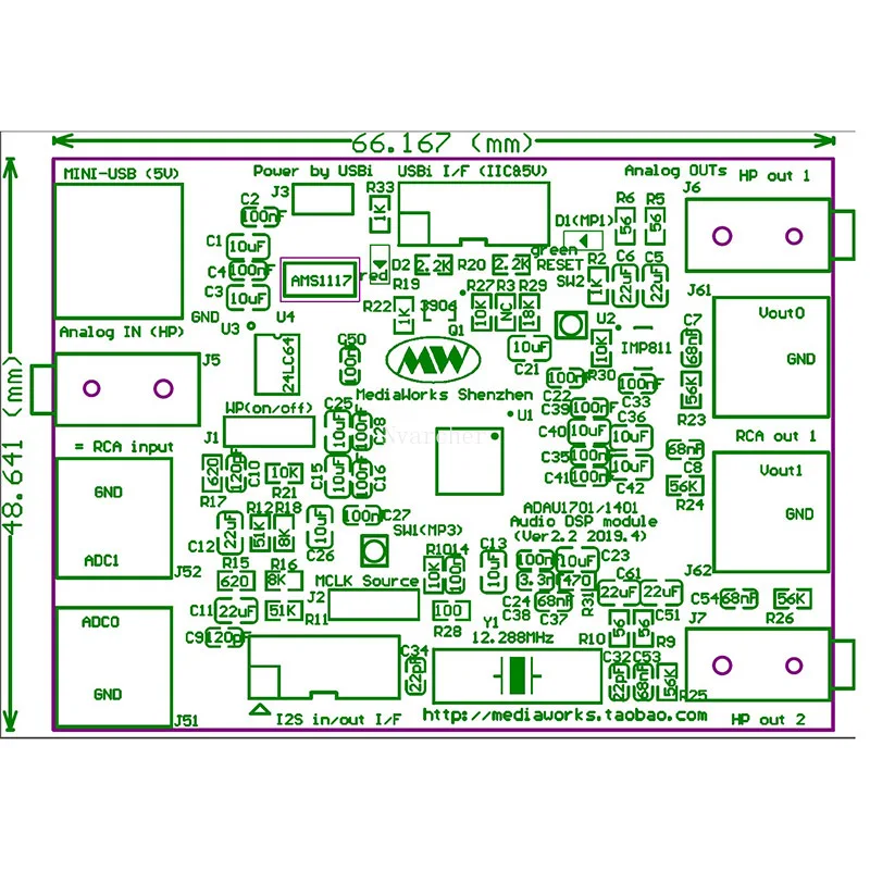 - Carte DSP de SIGMADSP ADAU1701/1401 d’ADI
