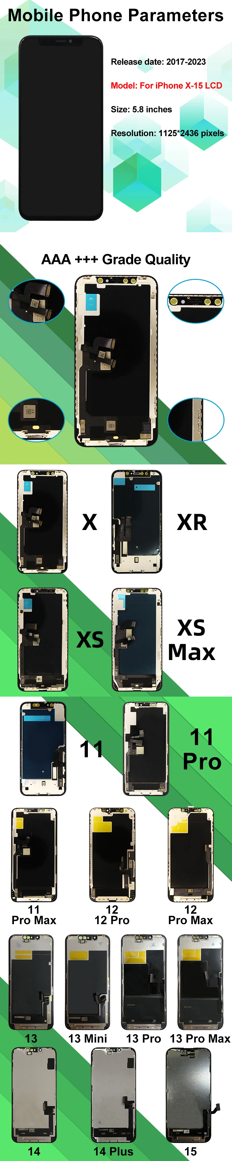 Voici quelques questions fréquemment posées sur l’OLED pour iPhone X XR XS MAX 11 Pro Max Display IP 12 Pro Max Écran Tactile Digitizer Pour iPhone 13 Pro Max 14 Plus 12 Mini 15 LCD :
