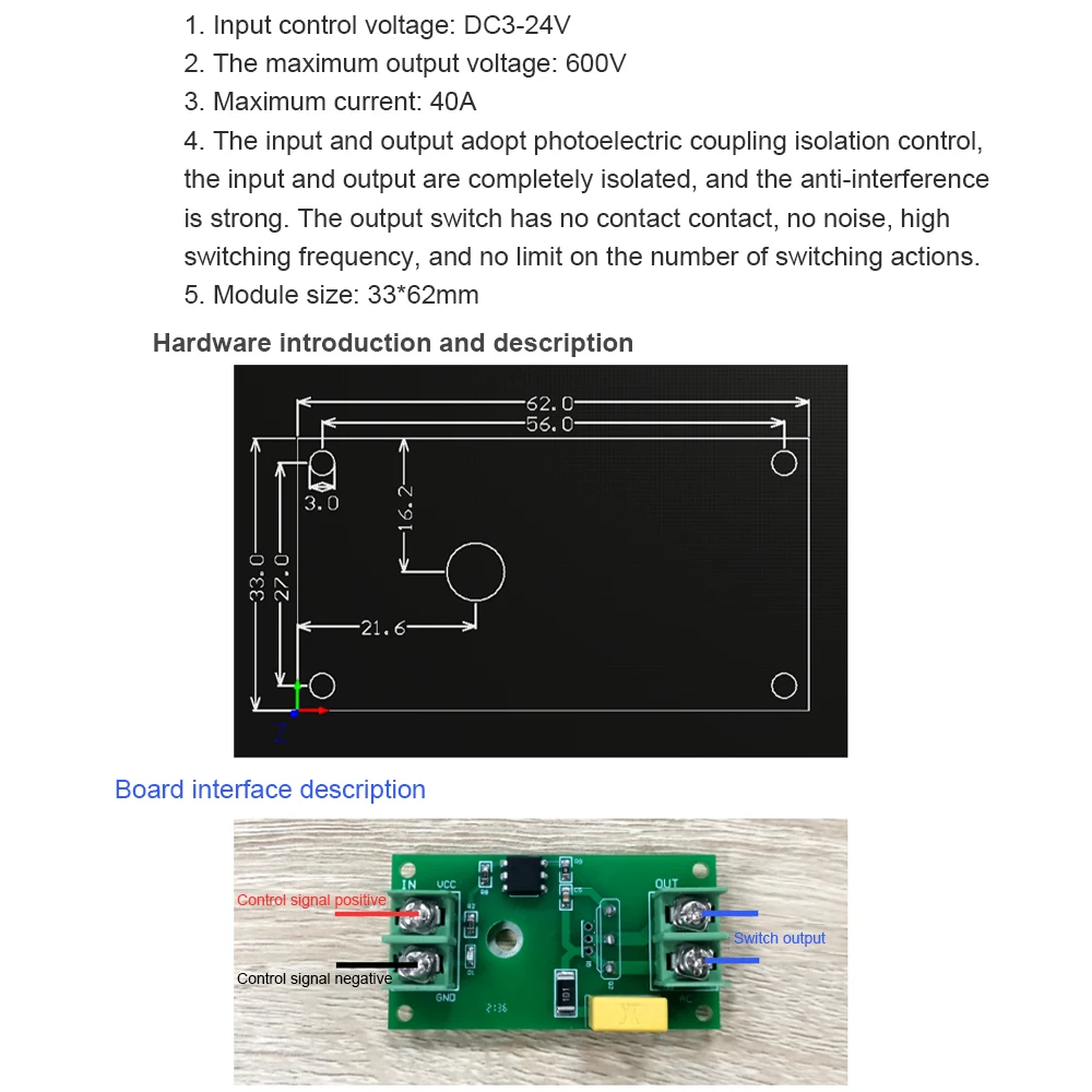 La tension de contrôle d’entrée de ce module est de DC3-24V.