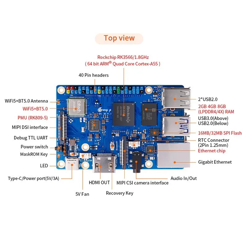 L’Orange Pi 3B est un ordinateur monocarte puissant avec différentes options de RAM, y compris 2 Go, 4 Go et 8 Go. Il est équipé d’un processeur RK3566 Quad-Core 64 bits, qui offre des performances rapides et fluides. La connectivité WiFi et BLE Gigabit permet une connexion Internet rapide et stable. De plus, cet ordinateur monocarte prend en charge la vidéo 4K, offrant une expérience visuelle exceptionnelle.