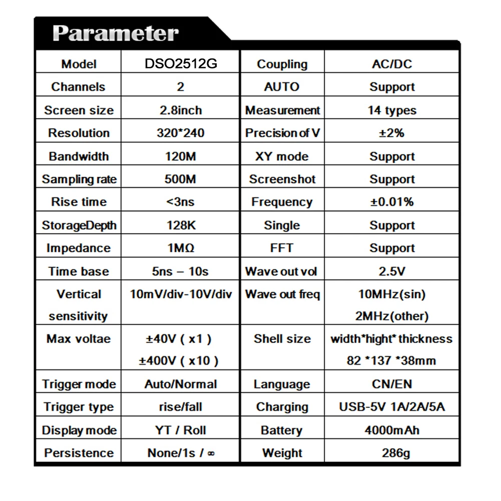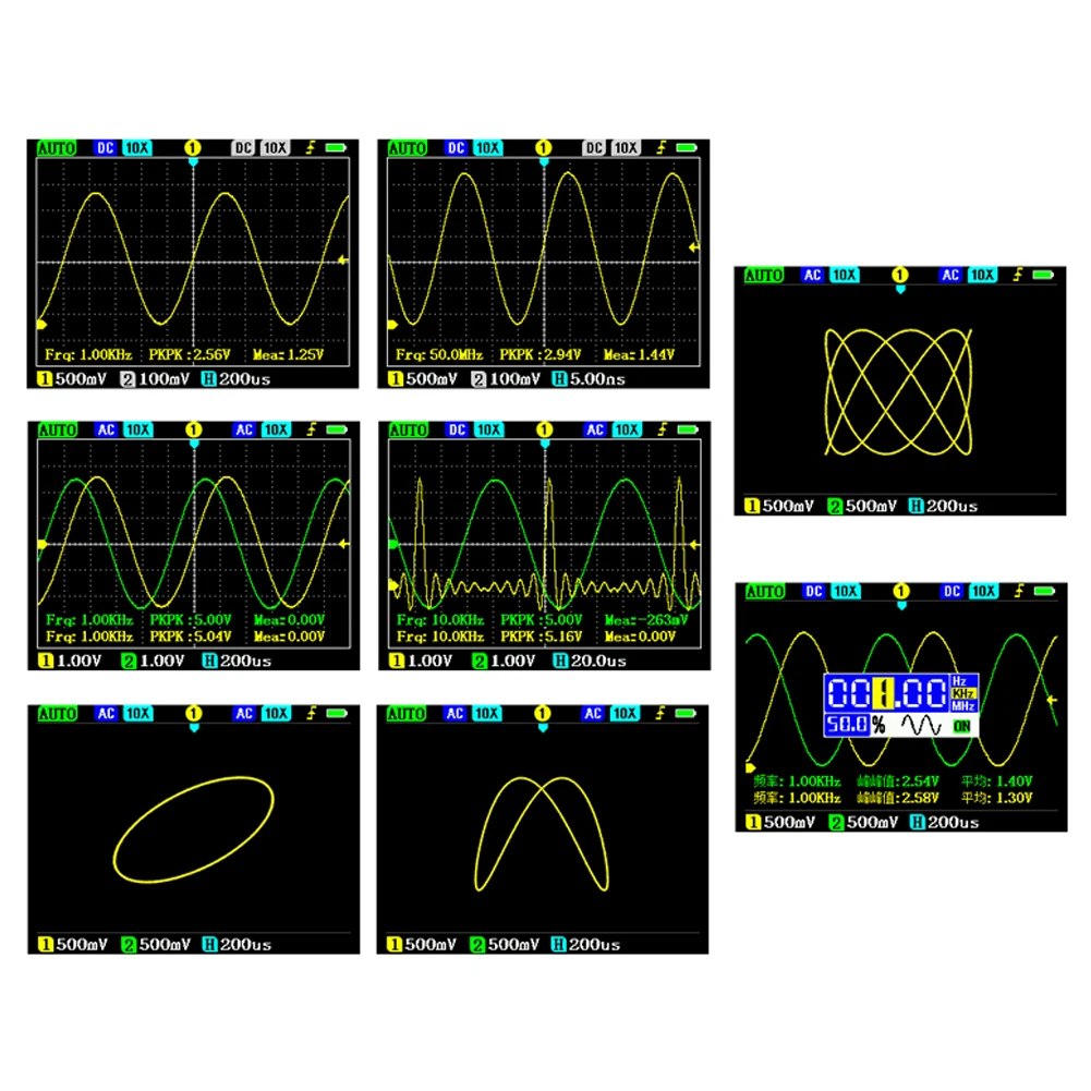 Cet oscilloscope peut être utilisé dans de nombreuses applications telles que le débogage de circuits intégrés, la maintenance automobile, la réparation d’appareils électroménagers, le bricolage, les compétitions électroniques et le débogage de l’alimentation électrique. Il est également largement utilisé pour produire différentes formes d’ondes d’amplitude 2.5V, telles que des ondes sinusoïdales, des ondes carrées, des ondes triangulaires, des demi-ondes et des ondes singulières.