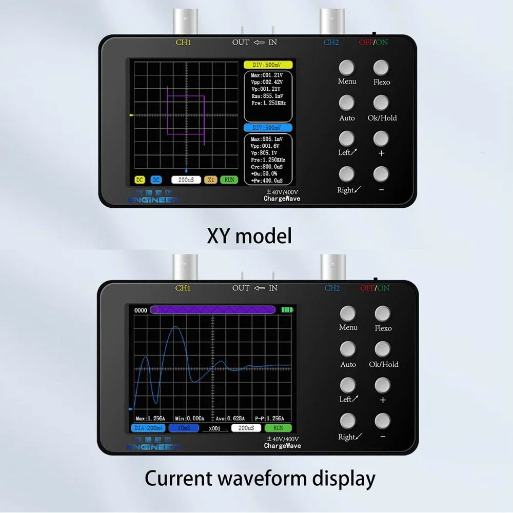 - Oscilloscope numérique à deux canaux avec un taux d’échantillonnage de 50M