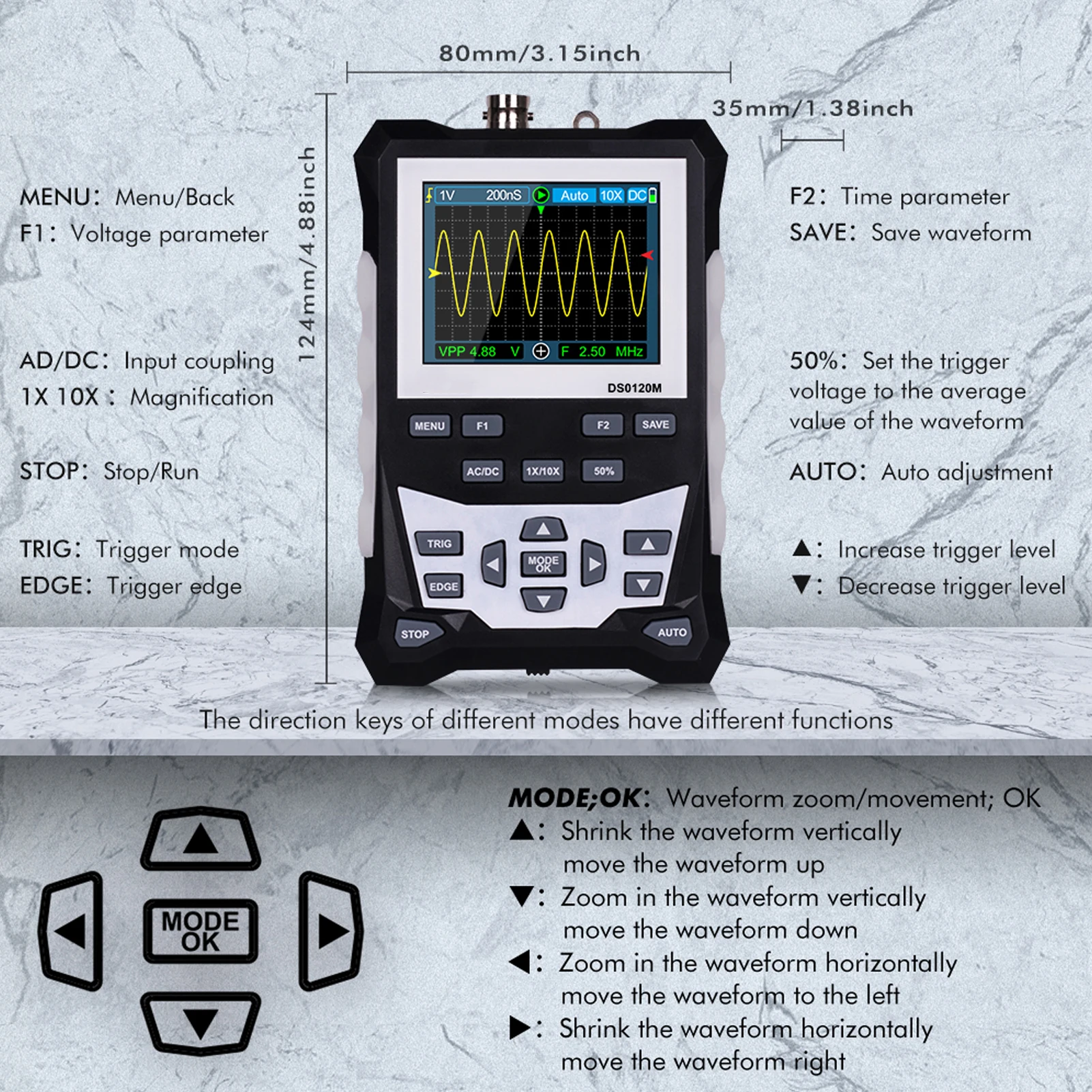 Cet oscilloscope professionnel KKmoon est équipé d’un écran LCD 2.4 pouces, vous permettant de visualiser les données clairement. Son rétroéclairage ajustable vous permet de l’utiliser dans différentes conditions. Il offre également 4 vitesses de sortie de signal carré, pour une utilisation polyvalente. Sa taille compacte vous permet de l’emporter partout où vous en avez besoin.