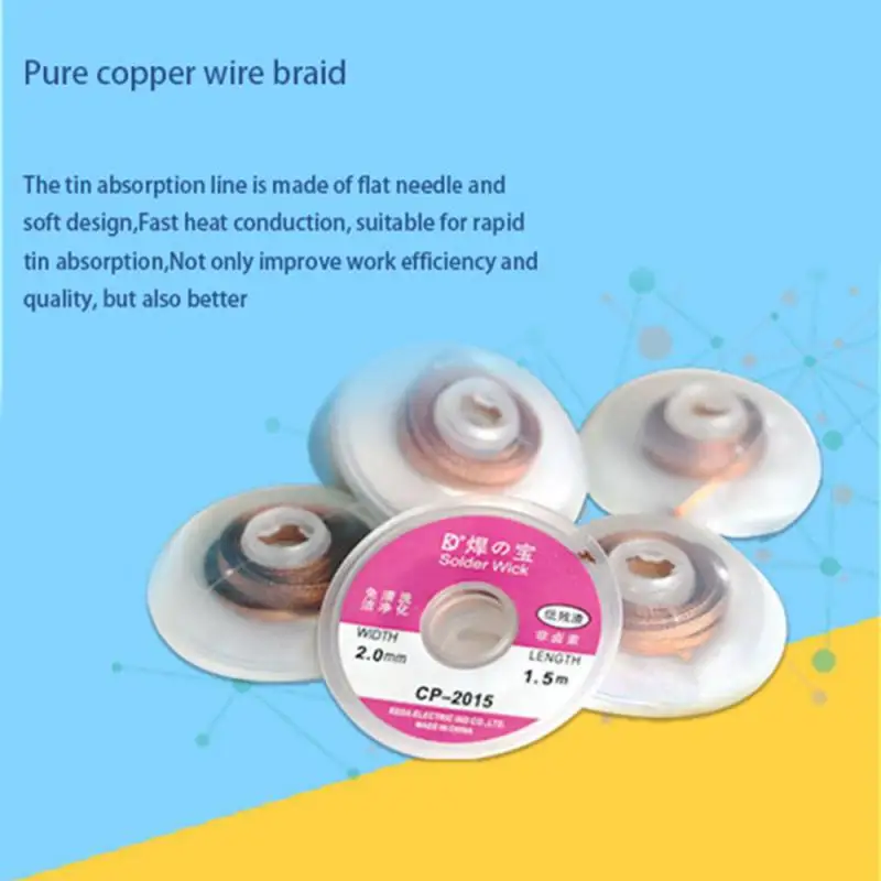 - Tresse de fil de cuivre pur: la ligne d’absorption d’étain est faite d’aiguille plate, de conception douce, de conduction de chaleur rapide, adaptée à l’absorption rapide de l’étain, améliorant non seulement l’efficacité et la qualité du travail, mais aussi mieux.