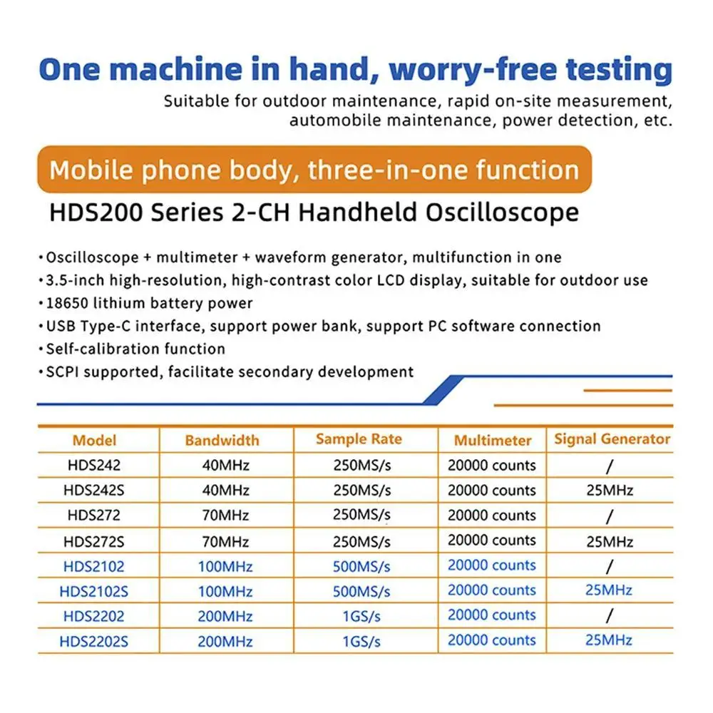 L’OWON Oscilloscope Numérique HDS2202S offre une bande passante de 200MHz, ce qui en fait un outil adapté aux mesures en électronique haute fréquence.