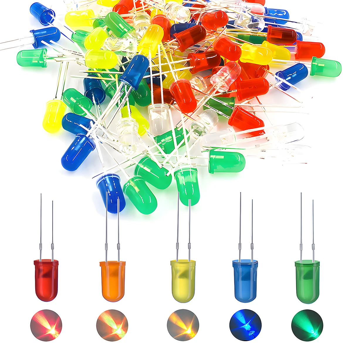 Ces diodes électroluminescentes de 5mm conviennent à une variété d’applications, notamment le remplacement des guirlandes lumineuses de Noël, les projets de bricolage de composants électroniques, les projets scientifiques, les expériences électroniques et les applications commerciales.