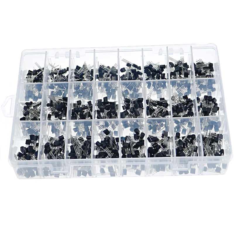 Le Pack de ul WieshammKit est un ensemble de transistors de puissance. Il comprend 24 valeurs différentes, telles que BC327, BC337, BC547, S8050, S9014, 2N2222, etc. Chaque valeur est composée de 35 pièces, ce qui donne un total de 3906 pièces dans la boîte. Les transistors sont emballés dans un boîtier TO-92.