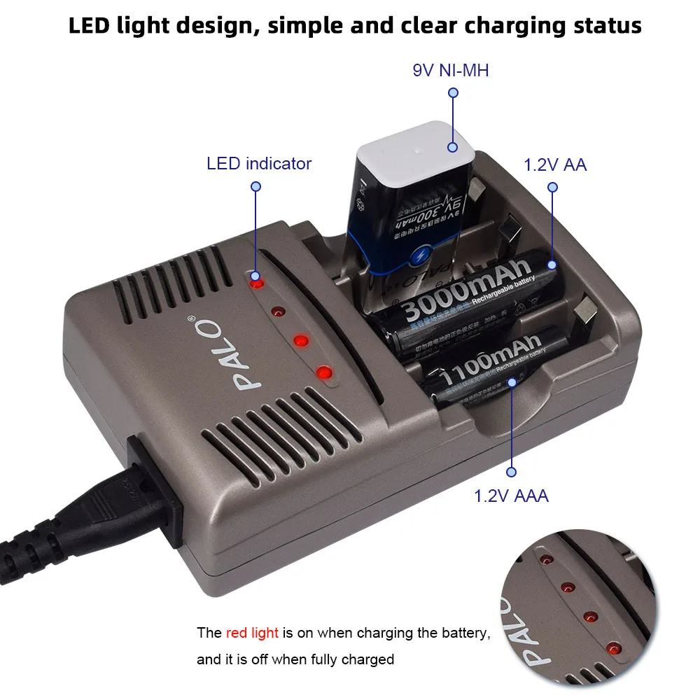 Le chargeur délivre une sortie de 1.2V DC et 200mA pour une charge rapide et sûre.