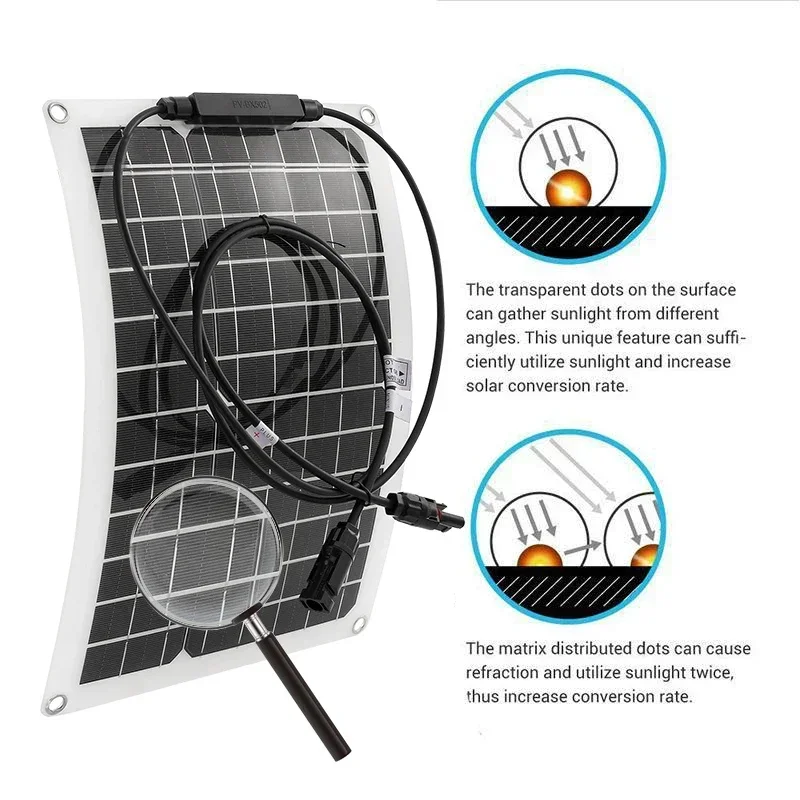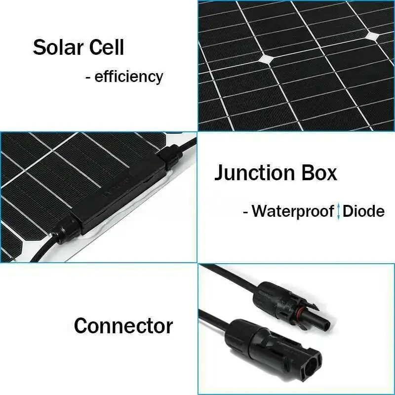 Le panneau solaire flexible 600W 12v/18V avec contrôleur 10A-100A est adapté au chargeur de panneau solaire de voiture et de RV de téléphones portables. Il est équipé d’une puce de cellule solaire monocristalline de niveau A, offrant une haute efficacité de conversion et une bonne efficacité de sortie. Sa surface est scellée avec de la résine époxy grâce à une technologie avancée de revêtement en polyéthylène, ce qui lui confère une belle apparence. Ce panneau solaire flexible est léger, facile à transporter et offre une haute stabilité et durabilité. Il est résistant aux rayures, facile à nettoyer et capable de résister à différents environnements. Ces caractéristiques en font un choix idéal pour les batteries de voiture, les véhicules récréatifs, les bateaux, les avions, les lampadaires solaires et bien d’autres applications.