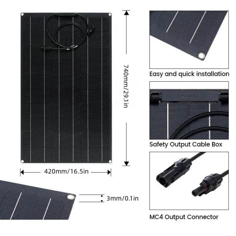 Le panneau solaire flexible mesure 740mm * 420mm * 3mm.