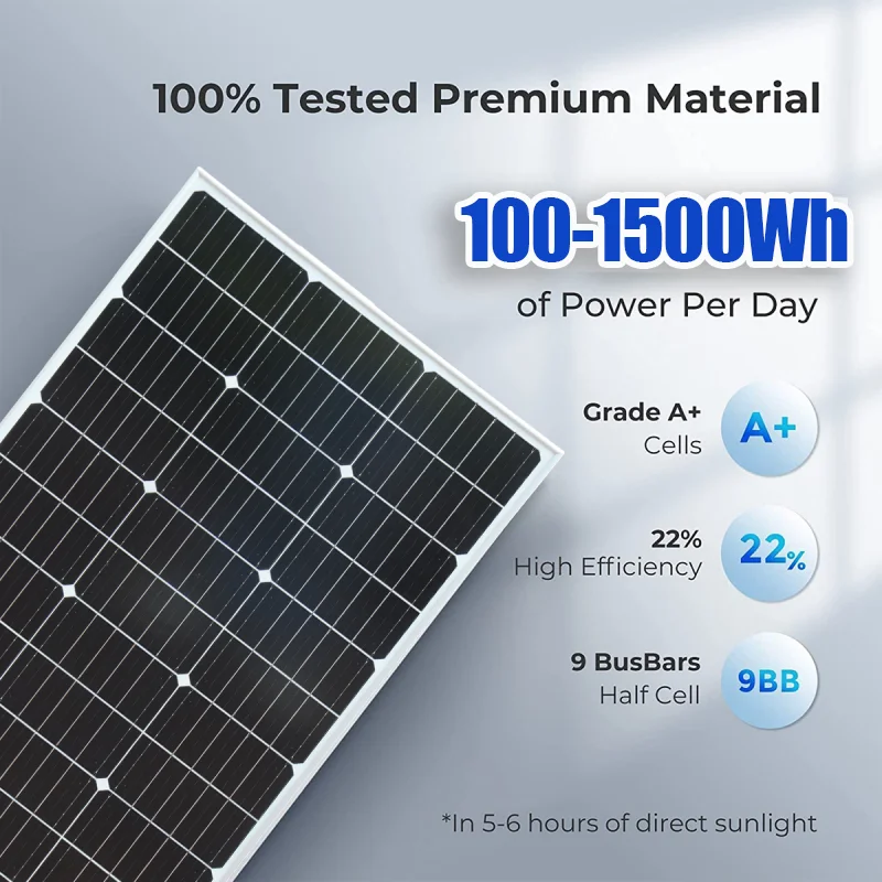 - Les cellules solaires en silicium monocristallin utilisées ont des taux de conversion élevés.