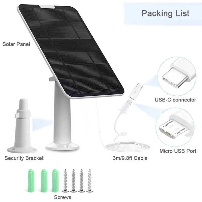 | – Panneau solaire compatible avec les caméras Eufycam 2C/2C Pro/E40/E20/2/2 Pro/E |