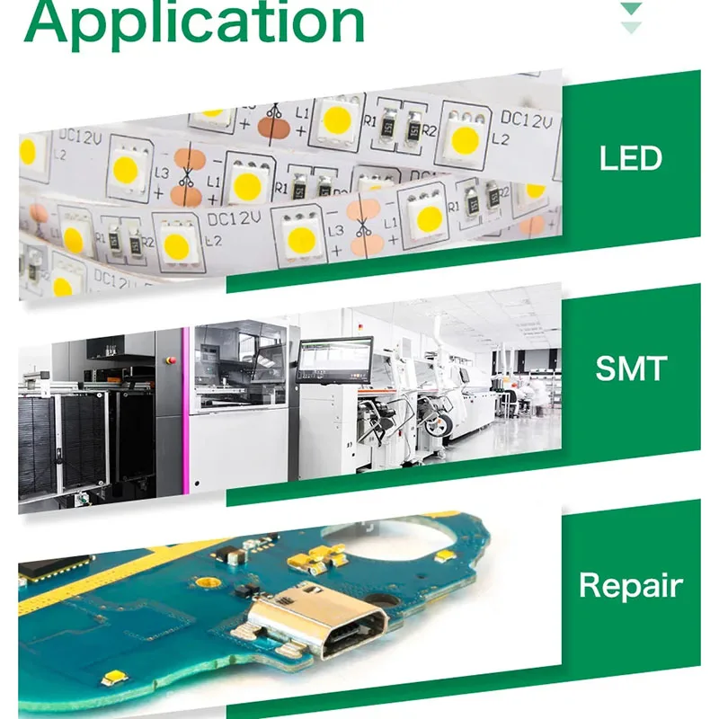 Cette pâte à souder convient parfaitement à la réparation de téléphone portable, à la soudure de prise de queue, à la soudure de BGA, à l’entretien de niveau de puce, etc. De plus, elle peut être utilisée pour la plantation d’étain BGA, le soudage de copeaux, l’entretien des téléphones portables, le soudage électronique ou encore la soudure d’ampoule LED. Elle convient également pour le patch SMD, le soudage manuel et les matériaux de soudage bricolage.
