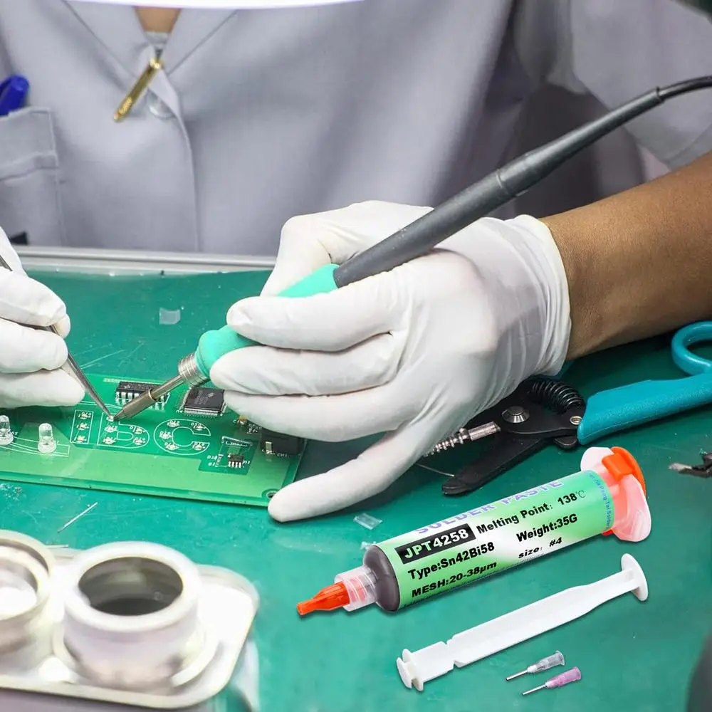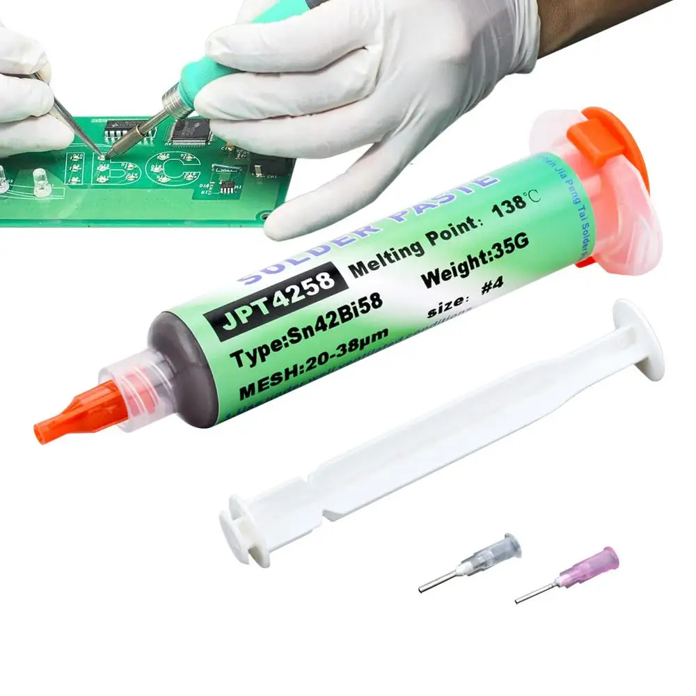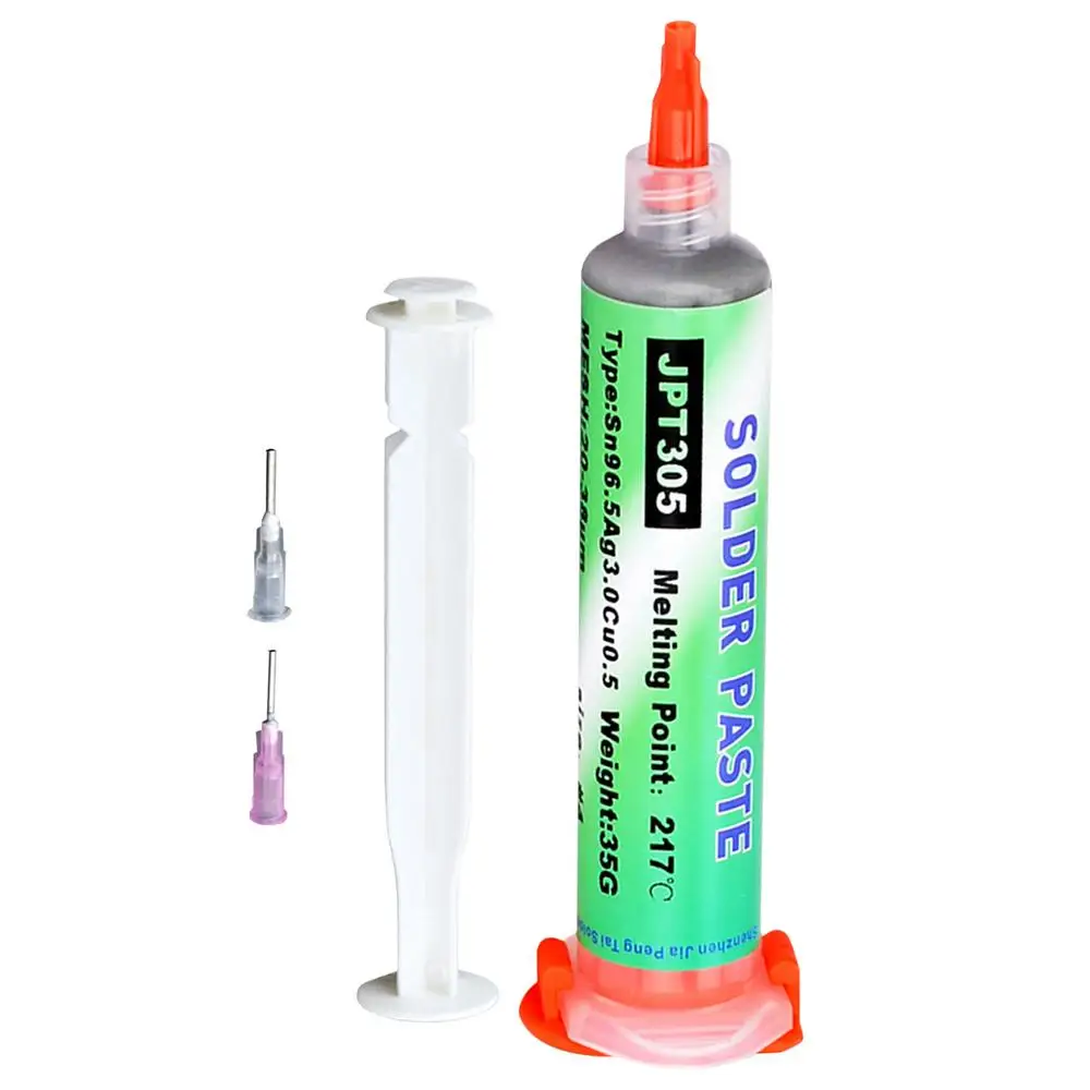 - Distribution précise: Équipé d’un piston et d’une tête de distribution, ce flux de soudure place la pâte à souder exactement là où elle est nécessaire, garantissant ainsi un travail de soudage propre et précis. Il est également facile à utiliser et adapté à divers projets de soudure.