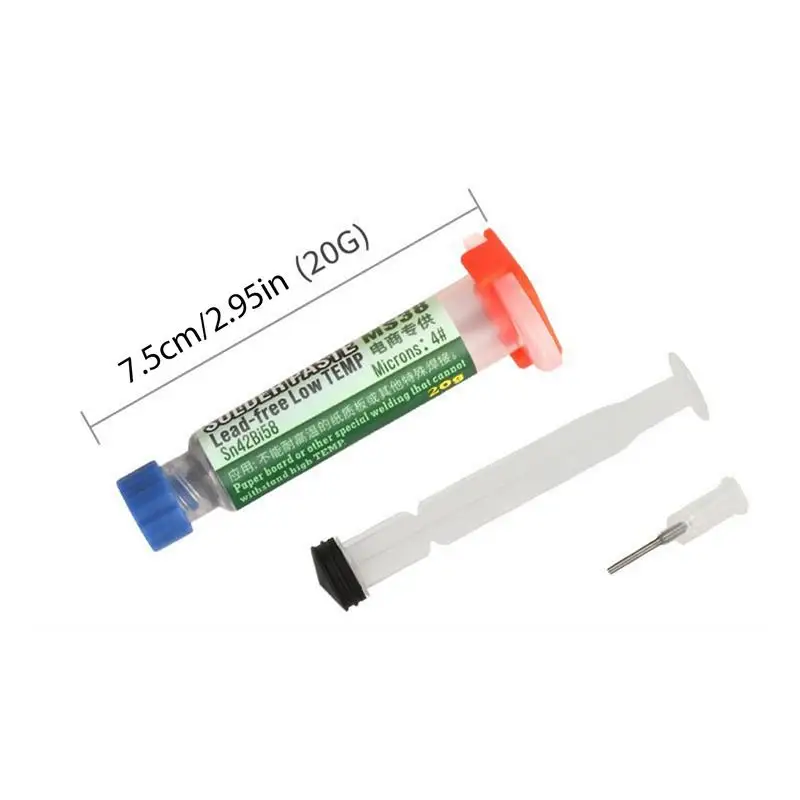 Nous recommandons la pâte à souder sans plomb pour l’électronique avec distributeur de flux, température de fusion de 138/183/217C et 3 touches grossières pour les travaux de soudure précis et efficaces. Elle offre une bonne viscosité, assure des joints de haute qualité et ne nécessite aucun nettoyage. Cependant, il convient de noter qu’elle n’est pas recommandée pour les plaques spéciales de type LED non résistantes aux hautes températures.