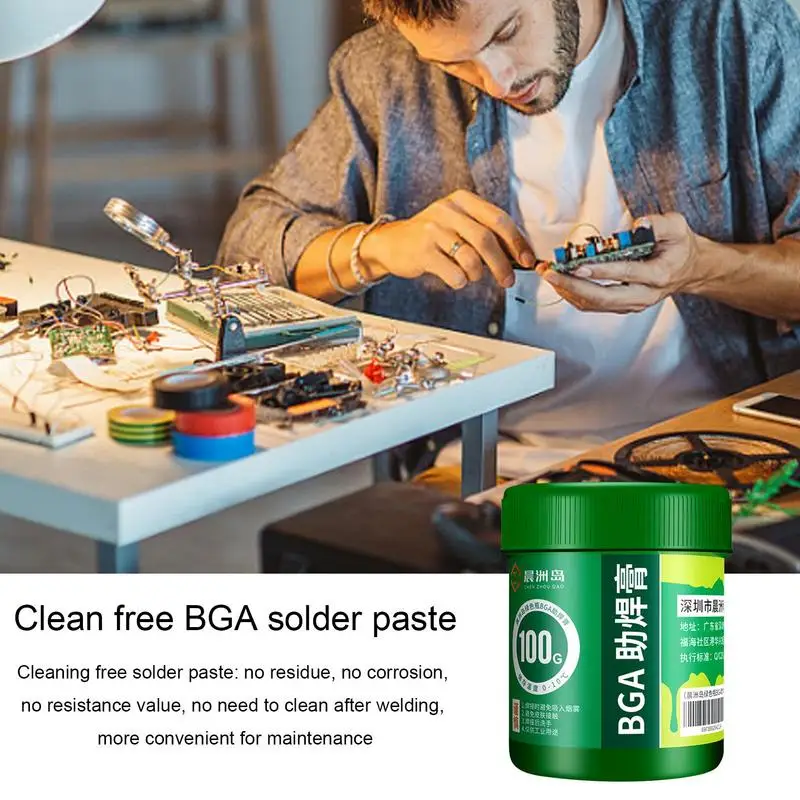 Avec ses caractéristiques sans nettoyage, la pâte de flux de soudure assure un bon effet de soudage, rendant votre soudage plus sûr. Livrée dans un emballage de 100g, cette pâte est adaptée à tous vos besoins de soudure.