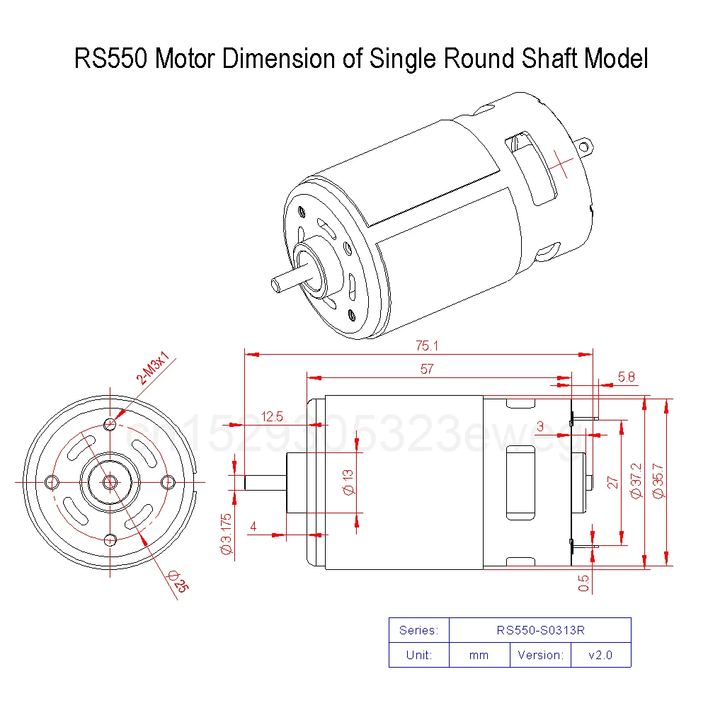 - Taille totale du moteur: 37.2mm (diamètre) * 75.1mm (longueur)