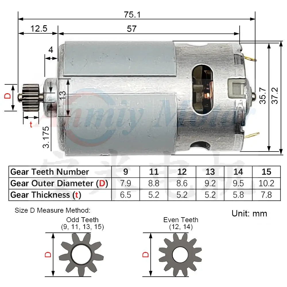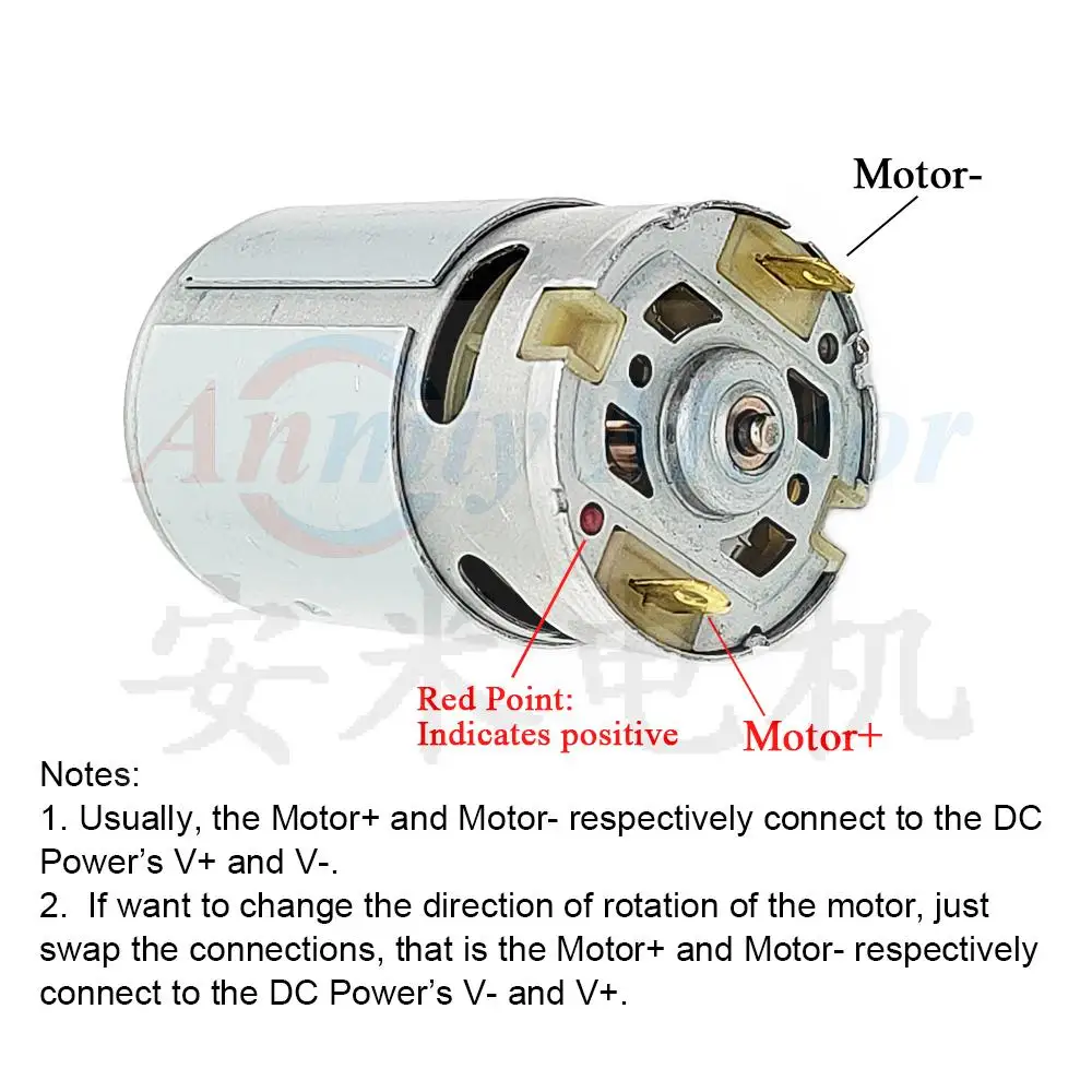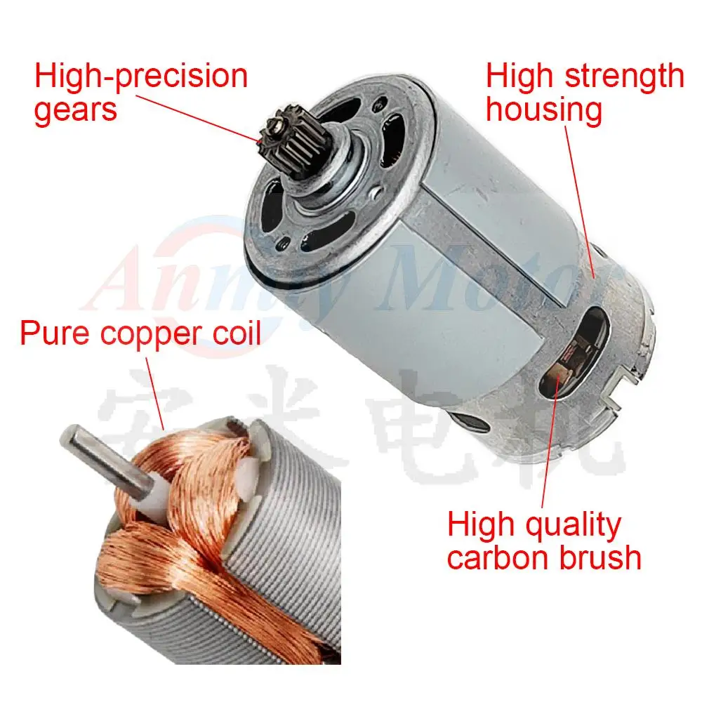La série de moteurs à brosse à courant continu RS550 (avec dents d’engrenage) est spécialement conçue pour les outils électriques à batterie au lithium rechargeable, tels que la perceuse électrique au lithium, la scie électrique, tournevis électrique, etc.
