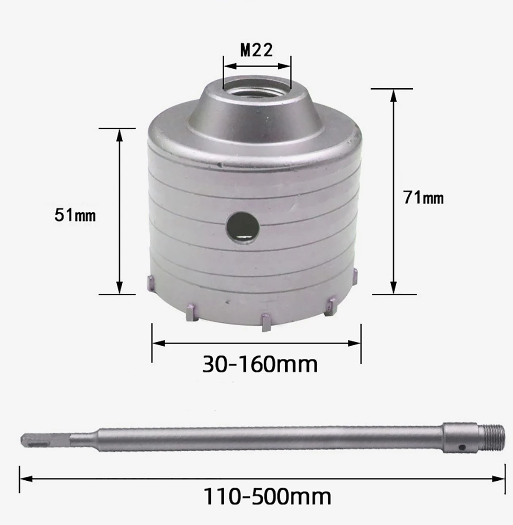 Pour aider les acheteurs à choisir les spécifications les plus adaptées, la scie à trou en béton et la tige de connexion SDS PLUS avec embout central sont vendues séparément.