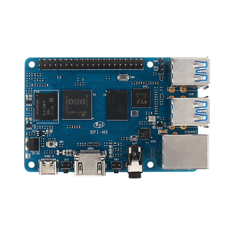 Amlogic S905X3 Quad-Core Cortex-A55 (2.0xxGHz). GPU Mali-G31 MP2 avec 4 x moteurs d’exécution (650Mhz). BPI-M5