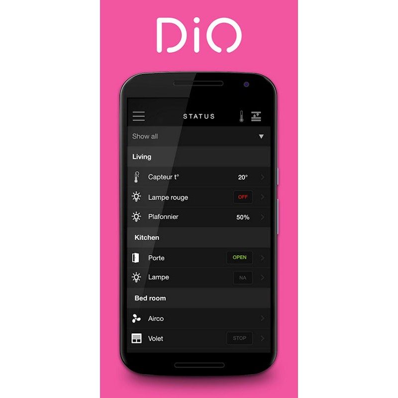 Il suffit de relier les accessoires DiO à la HomeBox DiO via getDiO.me, et en quelques minutes il est possible de contrôler son chauffage, son éclairage, ou encore ses volets roulants d’un simple clic sur son smartphone.