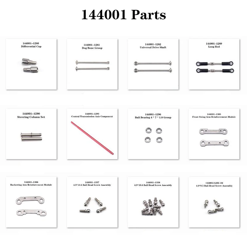 - Pièces de rechange spécifiquement conçues pour les voitures RC WLtoys 144001