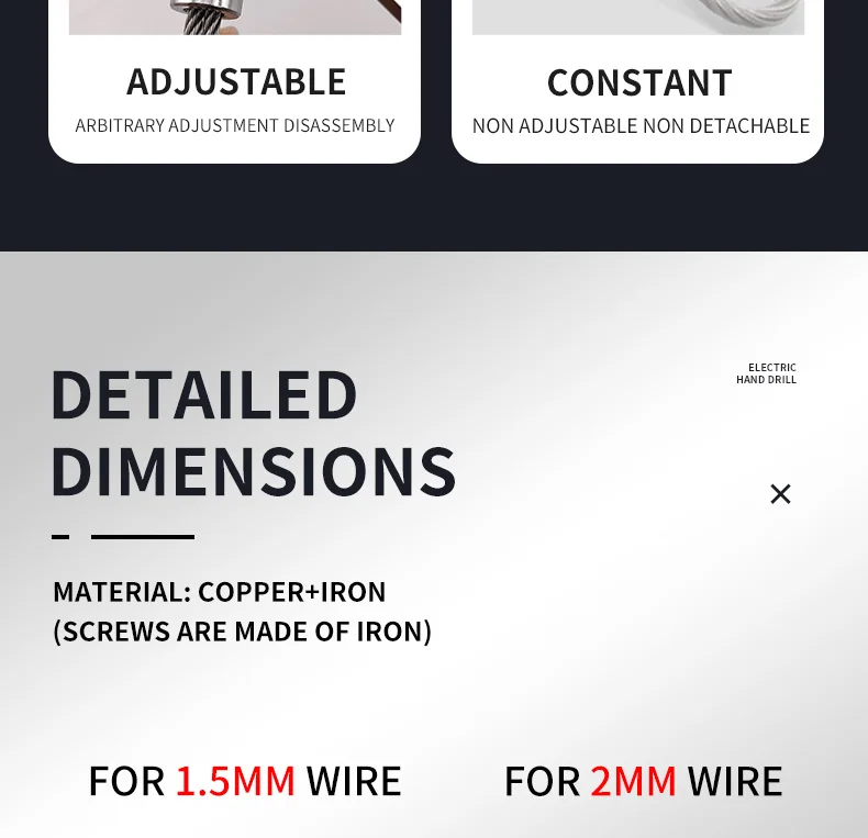 | Taille | Convient pour un fil d’acier de 1.5mm, convient pour un fil d’acier de 2mm |