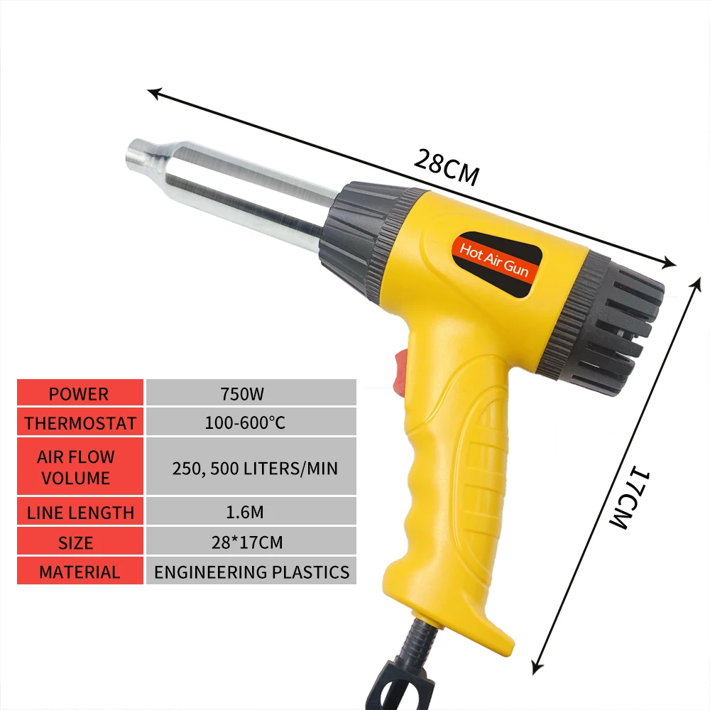 Le pistolet à Air chaud électrique 750W est un outil parfait pour le soudage et la réparation des tuyaux en plastique. Avec une puissance de 750W, il offre un excellent contrôle de chauffage avec une température maximale de 600°C.