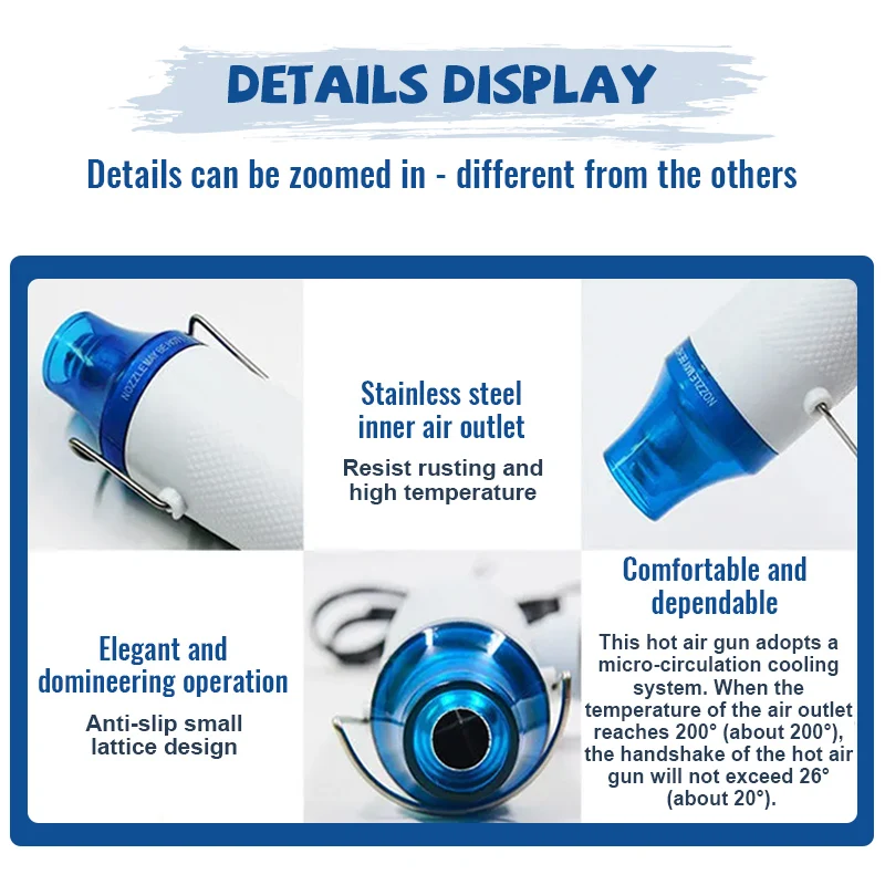 - Après l’achèvement, utilisez le pistolet thermique à haute température pour souffler quelques minutes.