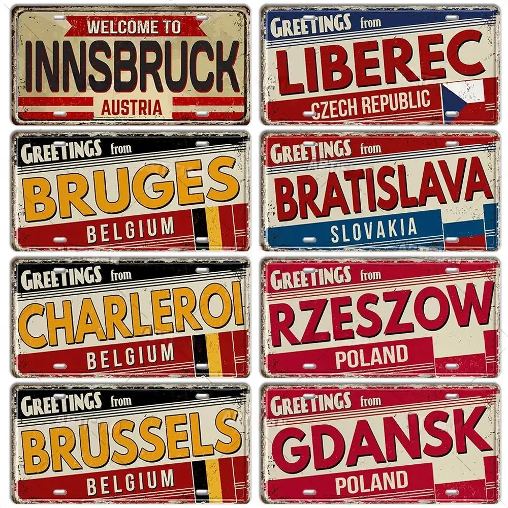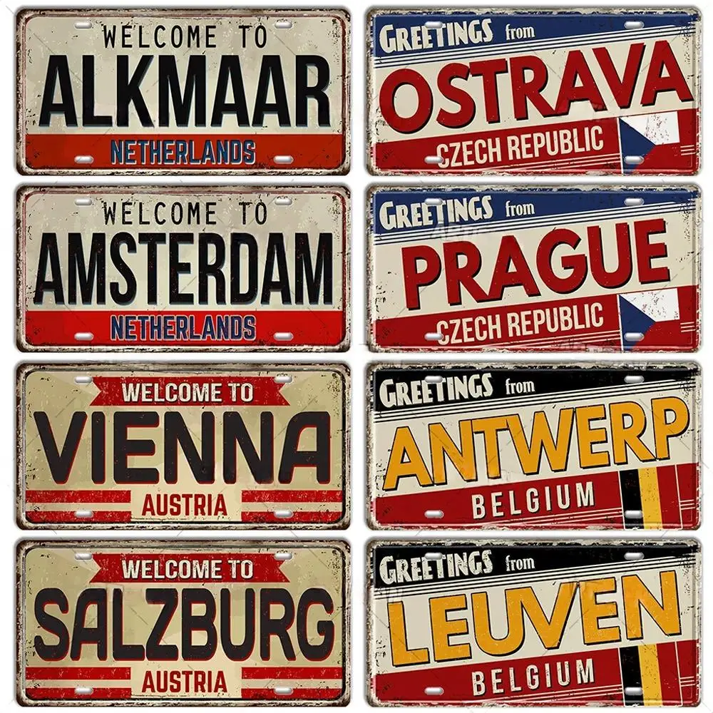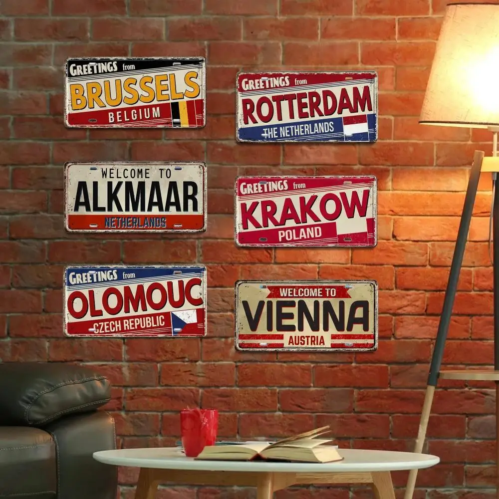 Pays-Bas BELGIQUE AUTRIE CZacétone POLAND Landmark Planner Plate, City Metal Sign, Vehicle Plate, Man Diversization Bar Wall Decor, Décoratif