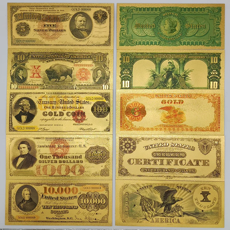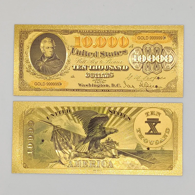5 10 100 1000 10000 dollars américainsFeuille d’or15.5*6.6cm (Billet), 17*12cm (Sac d’affichage OPP)Couleur comme sur la photoCollection commémorative, décoration de la maison, accessoires de jeu argentAnniversaire, souvenirs de voyage, cadeaux d’affaires, décoration d’intérieurArtisanat exquis, adapté à la collection, belle décoration de la maison