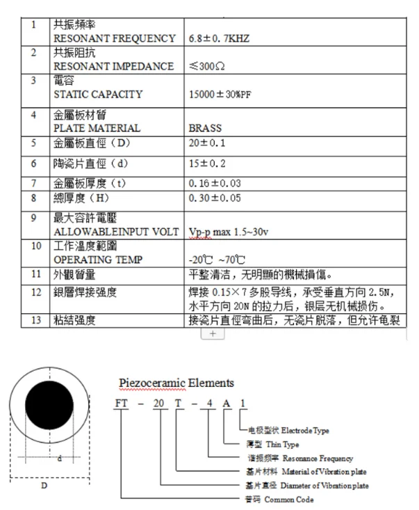 La sonnerie en céramique piézoélectrique est un dispositif utilisé pour les applications en céramique piézoélectrique. Les matériaux couramment utilisés sont le titane et les céramiques piézoélectriques préparées par frittage avec des oxydes de zirconium et de plomb. La fréquence de résonance du buzzer est généralement conçue autour de 3kHz, car l’oreille humaine est la plus sensible à cette fréquence. Pour améliorer la réponse basse fréquence, une structure à double diaphragme est souvent utilisée.