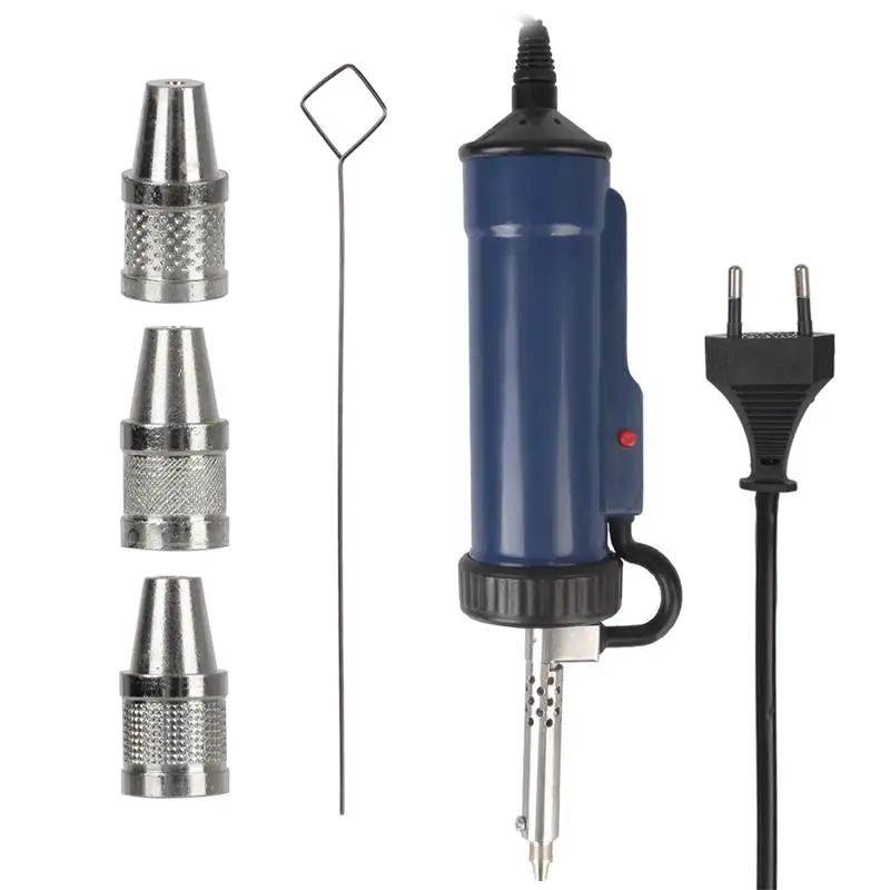 La Pompe à Dessouder Électrique Portable, avec 18 ventouses et 3 buses d’aspiration, est un outil pratique pour le dessoudage. Elle convient au retrait d’étain des circuits intégrés à couche épaisse et des grands composants. Avec son élément chauffant durable fin intégré, cette pompe à dessouder offre une grande capacité et une forte aspiration, ce qui en fait l’outil idéal pour le travail de dessoudage. Fabriquée avec un matériau en plastique et en acier inoxydable résistant aux hautes températures, elle évite l’oxydation et possède une longue durée de vie. De plus, elle peut être utilisée d’une seule main, avec une opération simple, rapide et pratique.
