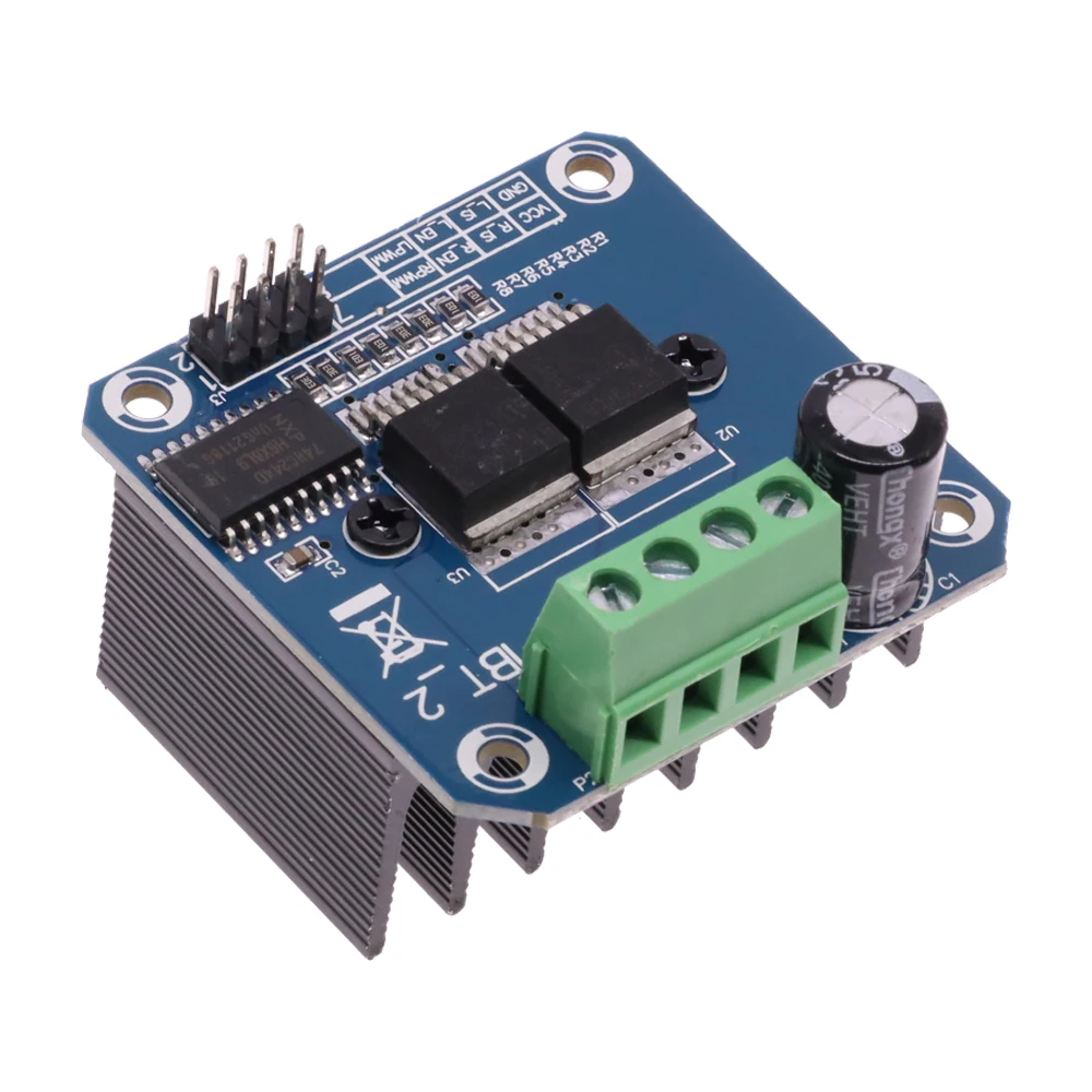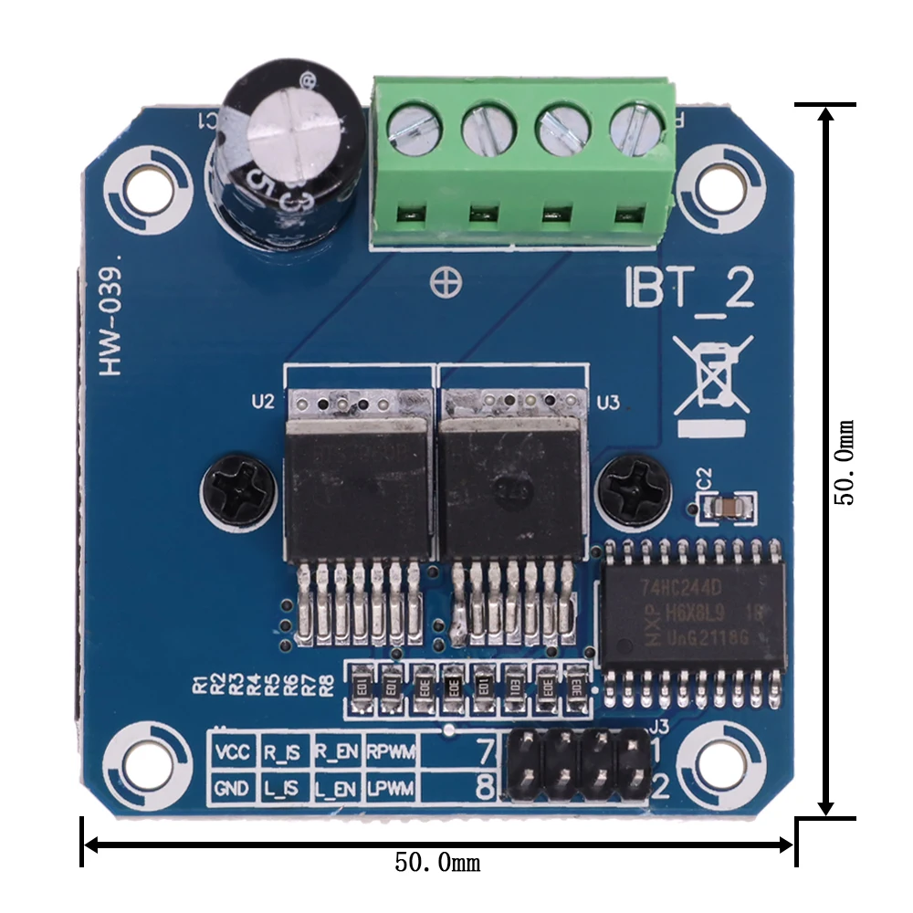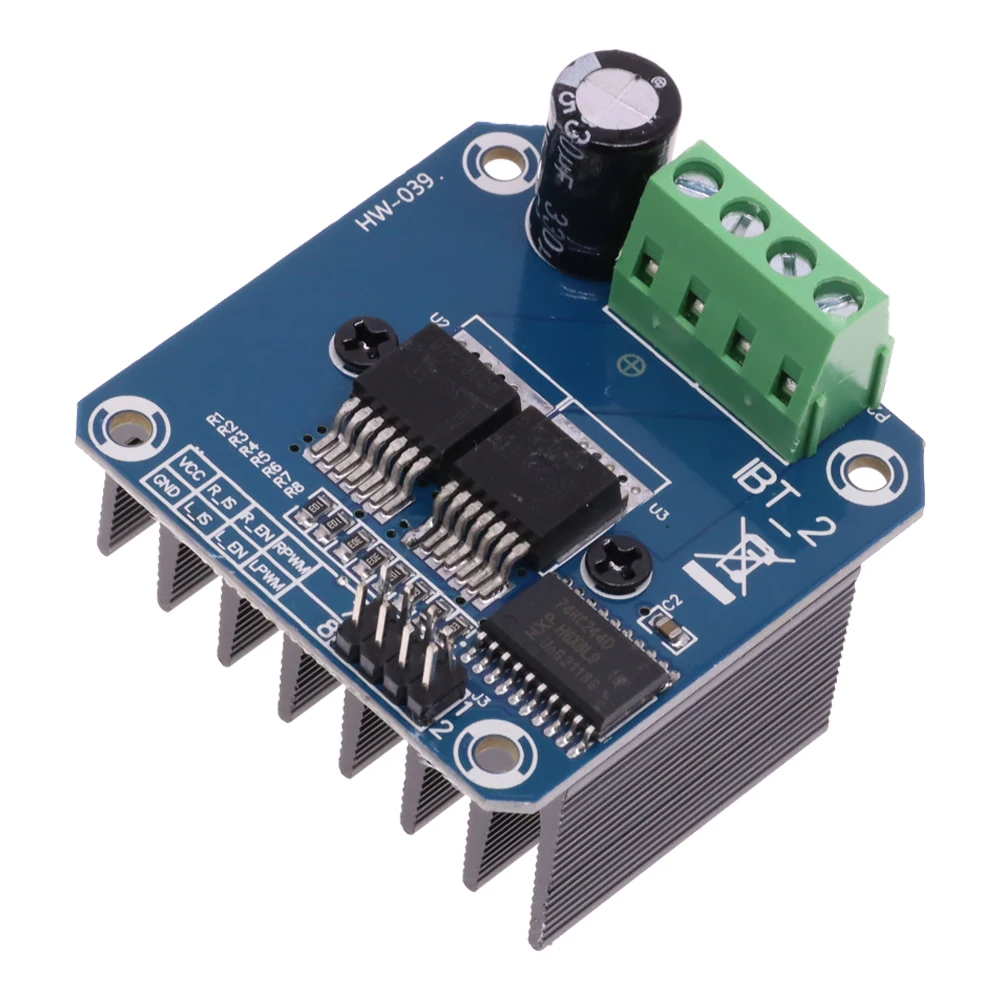 Double pilote de pont BTS7960 grand courant (43 A) HCe pilote utilise des puces Infineon BTS7960 composées d’un module de pilotage de pont en H à haute puissance avec protection thermique contre les surintensités. Double circuit pilote de pont en H BTS7960, avec un entraînement et un freinage puissants, isolant efficacement le microcontrôleur et le pilote du moteur! Courant élevé 43A