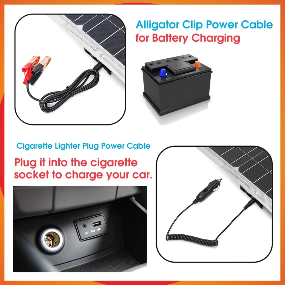 Le panneau solaire a une puissance de 20-80w dans des conditions normales. Sa tension est de 18V et il a une sortie USB maximale de 5V 2400mA/1500mA. Il est également équipé d’un contrôleur de batterie qui offre une excellente protection. Le contrôleur est 12V et 24V adaptatif.