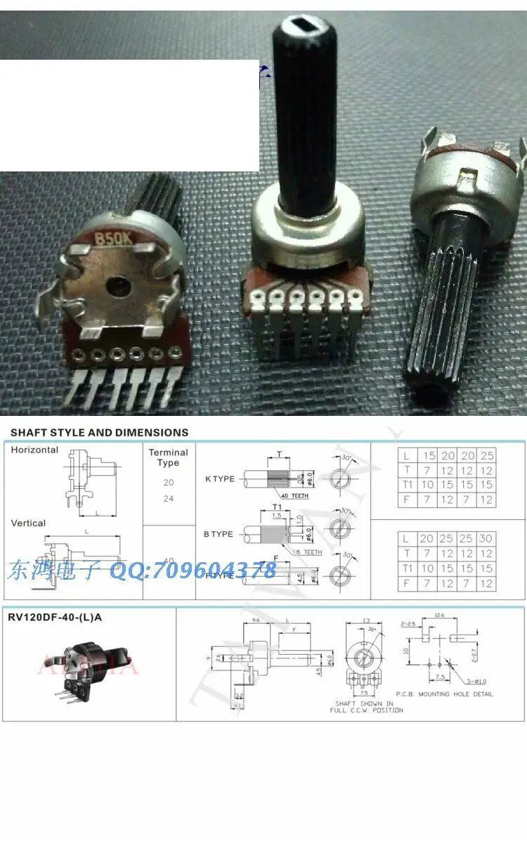 | Modèle | Potentiomètre rotatif Frost B50K |