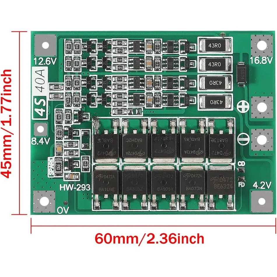 La carte de protection du chargeur de batterie au lithium 3S 4S offre une protection et un équilibre amélioré pour vos batteries lithium. Avec une tension de charge de 12.6V à 13.6V et un courant de décharge continu de 40A maximum, cette carte est adaptée aux moteurs fonctionnant avec des batteries de 11.1V, 12.6V, 14.8V et 16.8V.