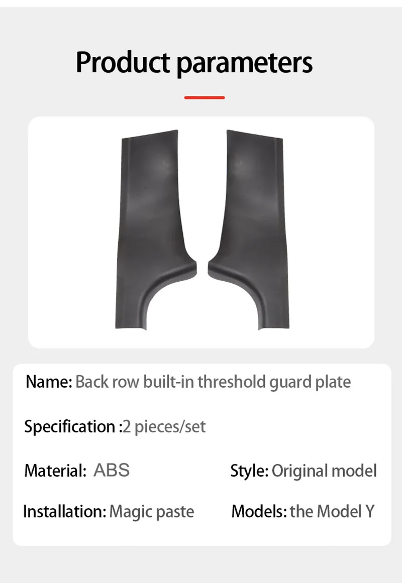 Le produit “Protection de seuil de porte arrière pour Tesla Model Y ABS” est conçu pour protéger le seuil de porte