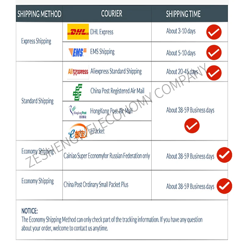 Nous expédions les marchandises via le port de HONGKONG ou Shenzhen.