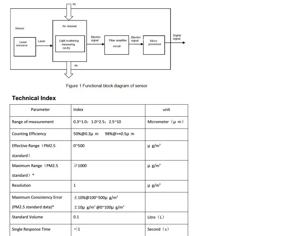 Le principe de diffusion laser est utilisé pour un tel capteur, c.-à-d. Produisez la diffusion en utilisant le laser pour rayonner les particules en suspension dans l’air, puis collectez la lumière de diffusion dans un certain degré, et obtenez finalement la courbe du changement léger de diffusion avec le temps. En fin de compte, le diamètre de particule équivalent et le nombre de particules de diamètre différent par unité de volume peuvent être calculés par microprocesseur basé sur la théorie MIE.