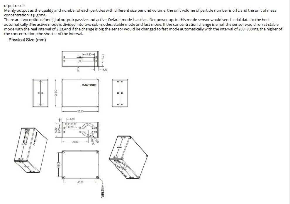 PMS5003 est une sorte de capteur de concentration de particules numérique et universel, qui peut être utilisé pour obtenir le nombre de particules en suspension dans l’air, c.-à-d. La concentration de particules, et les sortir sous la forme d’une interface numérique. Ce capteur peut être inséré dans des instruments variables liés à la concentration de particules en suspension dans l’air ou d’autres équipements d’amélioration de l’environnement pour fournir des données de concentration correctes dans le temps.